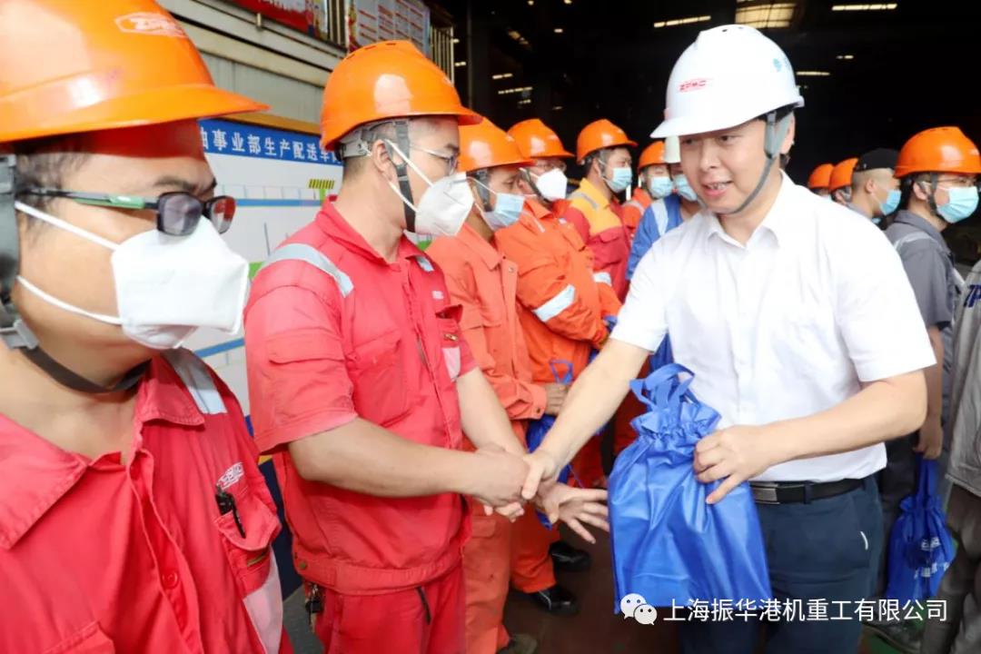 上海征途国际港机重工党支部书记、副总经理、工会主席王卫乔一同参加了现场慰问。
