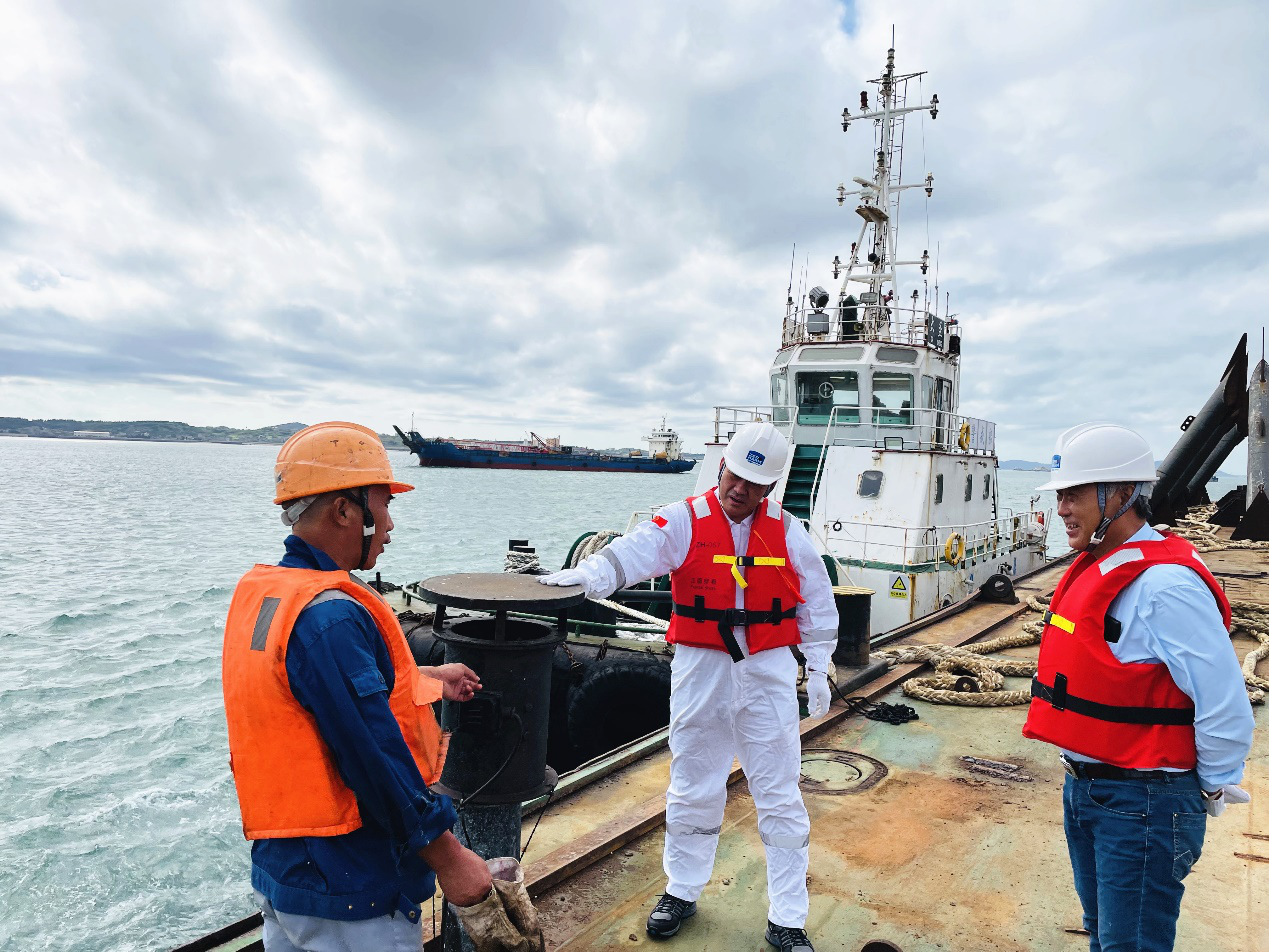 台风“康森”和“灿都”双双来袭,征途国际海服立即发布防台工作通知,启动防台抗台的应急预案,跟踪台风动态,公司主要领导检查指导抗台防汛工作。9月7日,公司临时负责人沈章、项目现场总指挥姚正华前往大唐平潭项目施工船舶进行防台检查。9月13日至14日,公司党委书记郑敏到长兴基地现场检查指导台风防御工作,党委副书记周杲擘、副总经理张涵亮、安全总监项焱淼等陪同检查。