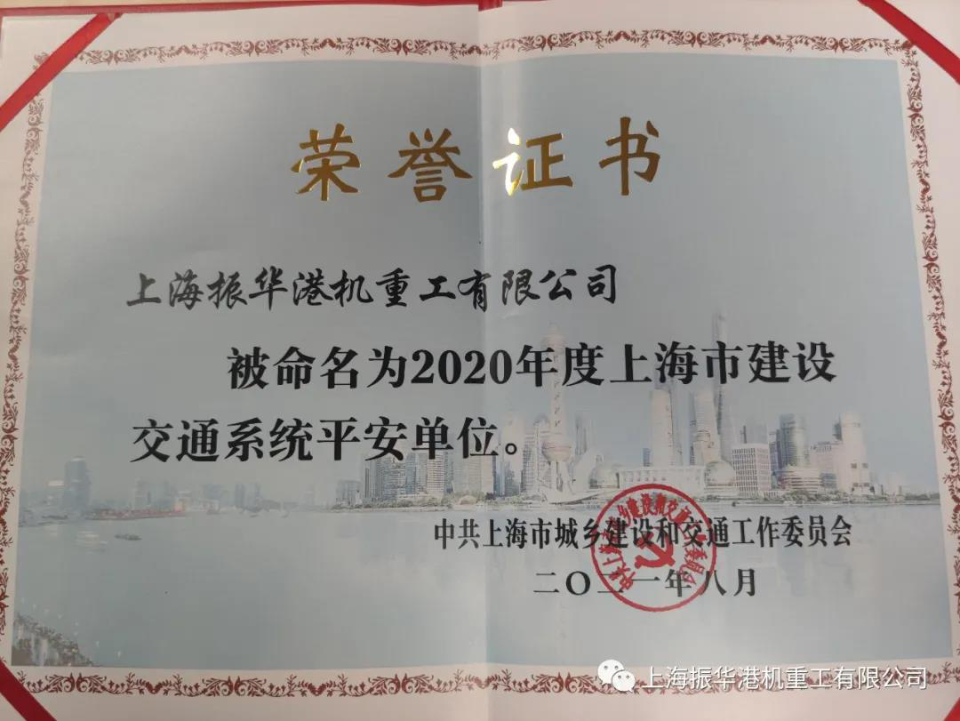 上海征途国际港机重工获评2020年度上海市建设交通系统平安单位