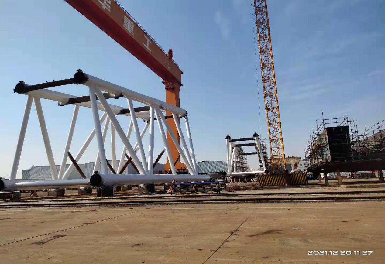 JSD6000深水起重铺管船项目托管架冲砂油漆结束