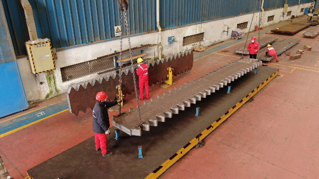 韩通首条风电船桩腿项目第14块齿条高强板切割完成