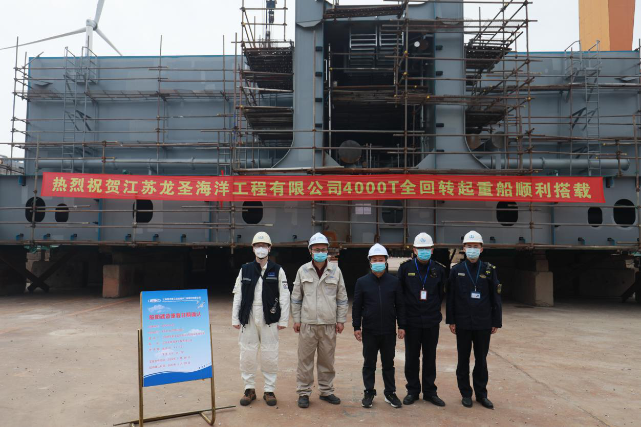 3月28日, 征途国际重工为江苏龙圣海洋工程有限公司(以下简称“江苏龙圣海洋”)建造的4000吨全回转起重船项目在启东海洋工程举行搭载仪式。