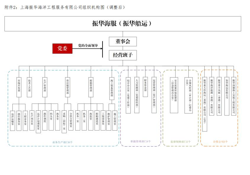 经征途国际海服及征途国际重工两级党委会议审批,征途国际海服(征途国际船运)全体职投票,正式通过《上海征途国际海洋工程服务有限公司综合改革方案》。根据综合改革方案,拟对原有的组织机构进行必要的调整,撤销了原中心层级,设立6个业务生产部门、4个职能管理部门和2个监督保障部门。