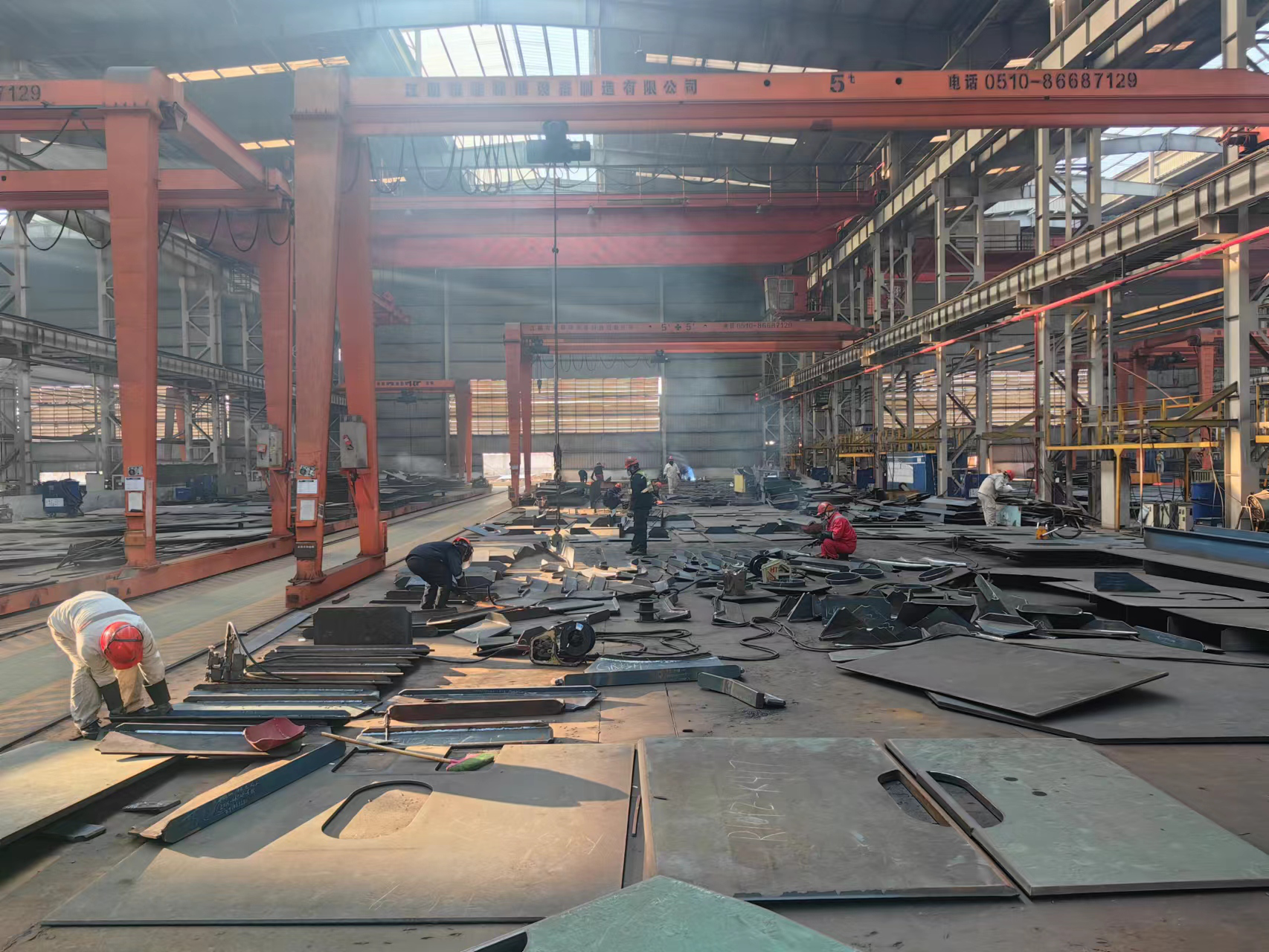 海建1600吨自升式风电平台项目春节期间不停工,组立车间桩靴分段正在施工。