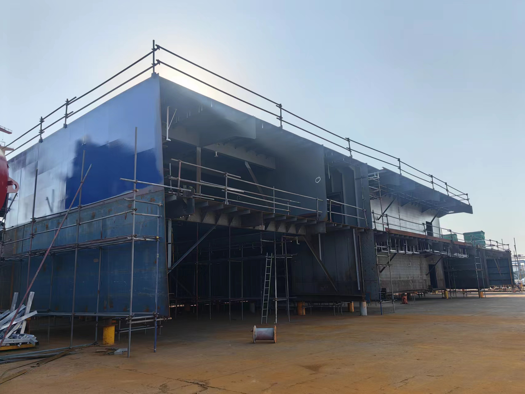 1月下旬,三航4000吨起重船项目上建两层分段总组。