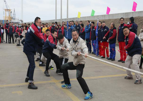 2月23日下午,在公司行政楼广场举行了第一届“启东·团结杯”拔河比赛,本次活动共有来自各部门12支队伍120余人参加,班子成员分别加入到各参赛队伍中与选手们一起加油努力。