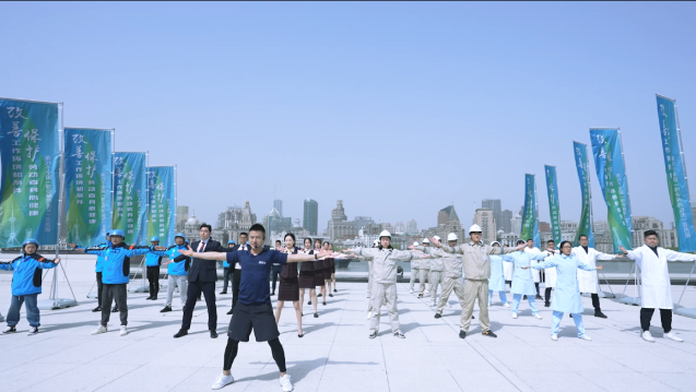 4月24日,身穿ZPMC工作服的征途国际人的身影出现在《职业病防治法》宣传周启动仪式分会场视频中。今年的4月25日至5月1日是第21个《职业病防治法》宣传周,国家卫健委、民政部、人社部、国家医疗保障局、国家疾病预防控制局、中华全国总工会、上海市人民政府联合举办了《职业病防治法》宣传周启动仪式。启动仪式上,虚拟主持人申?雅来到陆家嘴金融中心分会场,宣传“人人都能跳5分钟工间操”的健康理念,来自ZPMC的职工作为制造行业的代表在视频中亮相,与来自医疗行业、外卖平台和金融行业等方面的劳动者代表汇聚在陆家嘴,共跳活力满满的工间操,为“改善工作环境和条件,保护劳动者身心健康”助力。