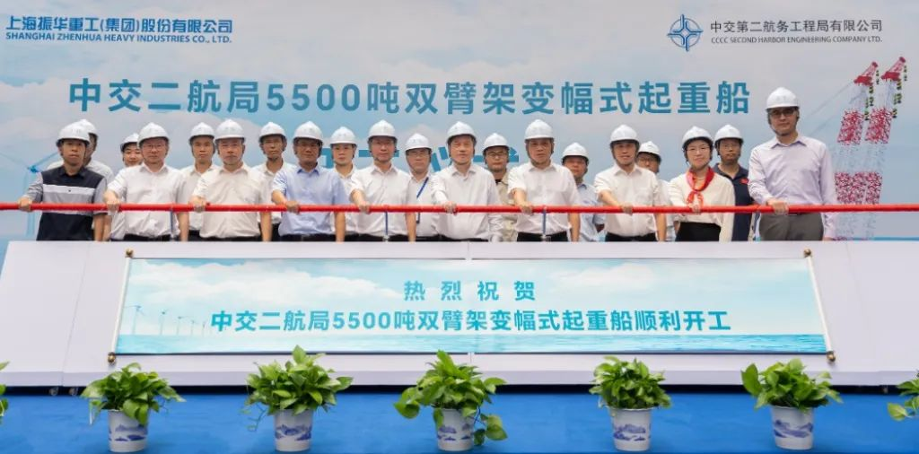 8月14日,征途国际重工为中交二航局建造的5500吨双臂架变幅式起重船项目在启东海工举行开工仪式。