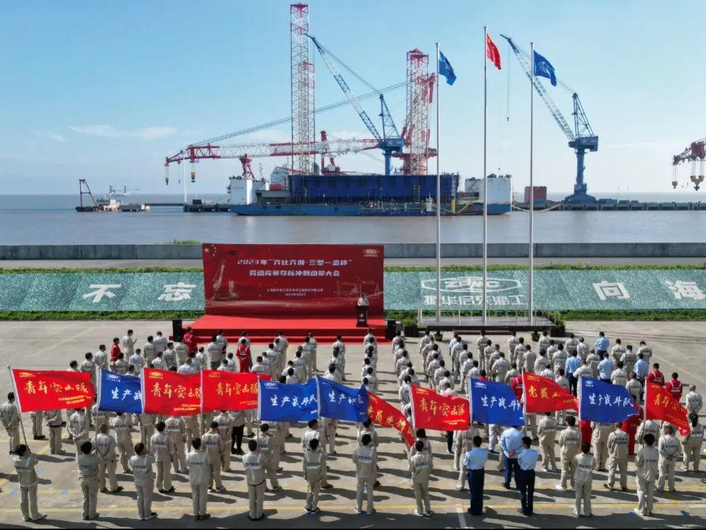 9月6日,启东海工举行2023年劳动竞赛夺标冲刺动员大会,公司领导班子、各级干部、项目经理、分包商负责人、新进员工参加活动。
