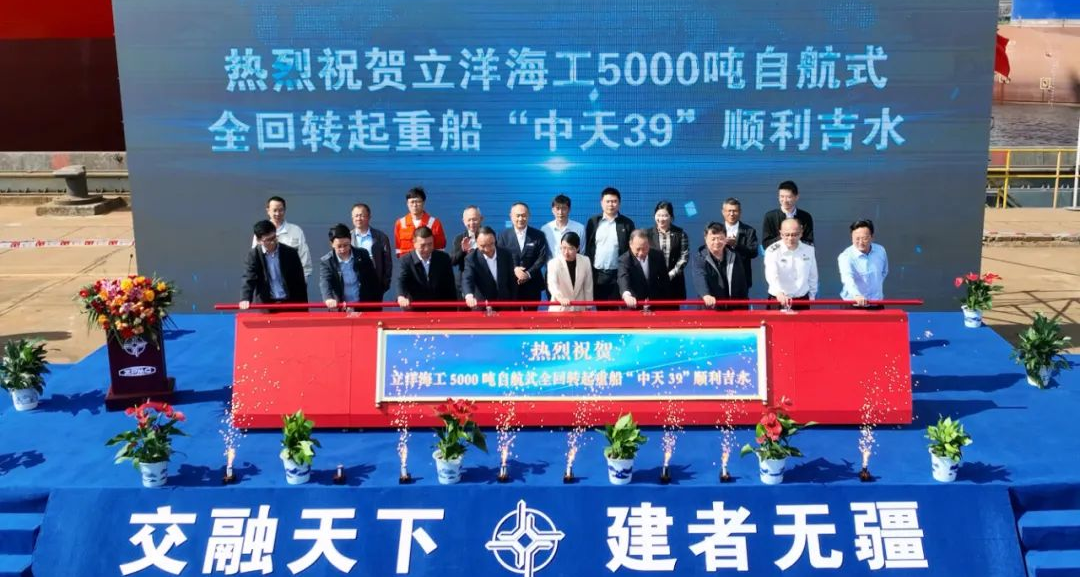 立洋海工5000吨自航式全回转起重船举行吉水仪式