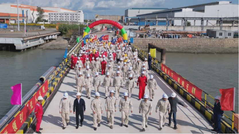 10月23日上午9时,征途国际启东海工舾装码头,公司新建引桥开通运行仪式隆重举行。