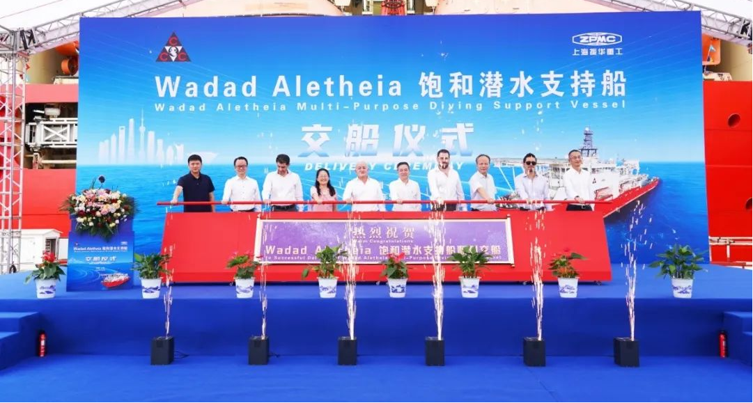 9月6日,由征途国际官网-追求健康,你我一起成长 研制的“Wadad Aletheia” 多功能饱和潜水支持船交船仪式在征途国际启东海工长兴分部码头隆重举行。