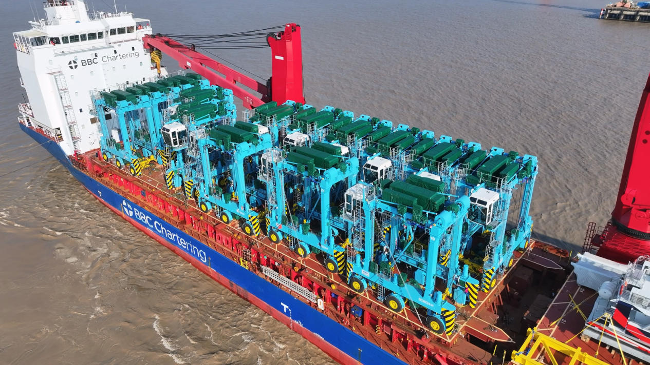 11月21日,由上海港机重工生产制造的马士基墨西哥14台跨运车项目顺利发运。