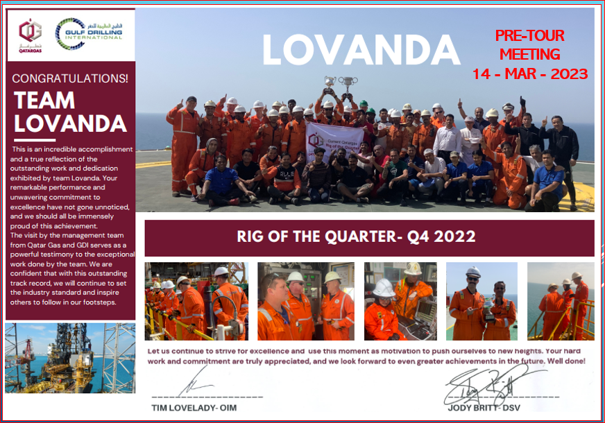 公司“振海五号”获评卡塔尔天然气“2022年第四季度最佳钻井平台”